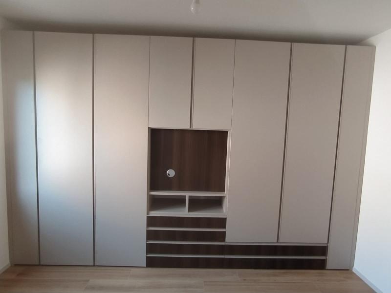 Un armadio a misura da muro a muro , la richiesta del cliente era di avere il massimo del contenimento e una tv centrale.